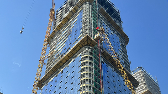 繼9月22日西塔樓封頂后,10月29日又迎來了東塔樓封頂,至此,三座塔樓全部封頂。項目占地面積約49000㎡,總建筑面積約439000㎡,是集辦公、商業、酒店等于一體的超高層綜合體項目。